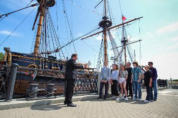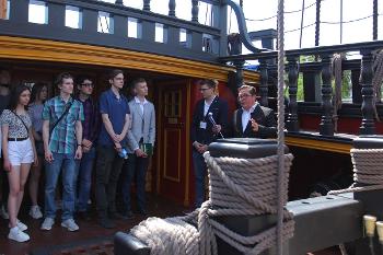 Студенты и лектор начали экскурсию на Адмиралтейской площади. Затем прошли на корабль, где экскурсовод Иван Пухов рассказал о «Гото Предестинации».