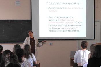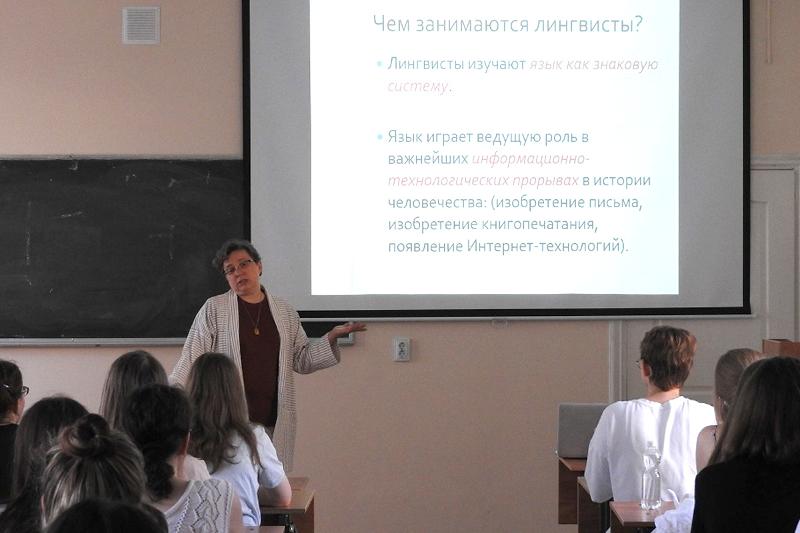 Лекция «Человек и два языка», которую прочла заведующая кафедрой немецкой филологии, доктор филологических наук, профессор Людмила Величкова, была посвящена теме билингвизма. Завершили день практические занятия по немецкому и французскому языкам.
