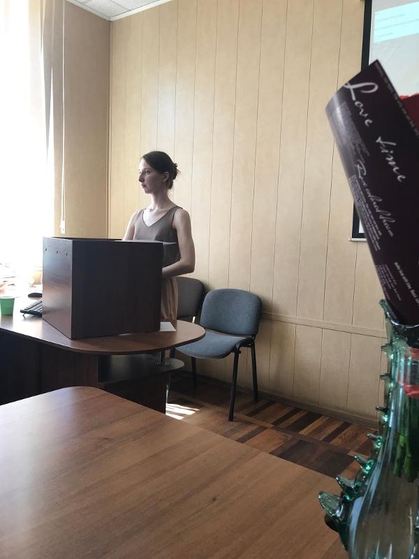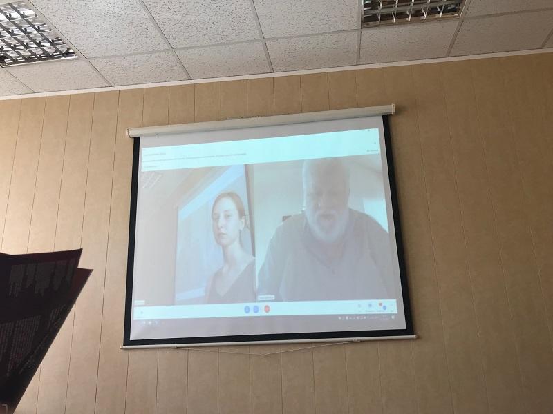 Алексей Николаевич подключился к нам через Skype. Мы «связали» его с аудиторией и вывели видео на интерактивный экран. Я выступила с защитным словом, ответила на вопросы, затем передала слово Алексею Николаевичу: он говорил о том, что ему и автору Алексису Парнису невероятно приятно, что мы обратили внимание на книгу.