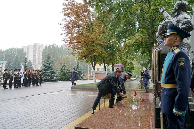 Встреча ректоров Воронежской области завершилась торжественным возложением цветов на Аллею авиационной славы Военно-воздушной Академии им. профессора Н.Е. Жуковского и Ю.А. Гагарина.