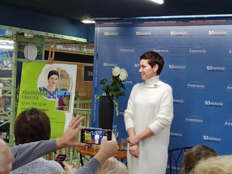Отметим, что студенты, школьники и журналисты «завалили» Екатерину Сирота вопросами. Её спрашивали о страхе перед белым листом бумаги, о том, кто первым читает её произведения, о судьбе её книг, любимых писателях и поэтах и, конечно же, о творческих планах. Екатерина поделилась, что скоро выйдут из печати две её книги для детей. Одна будет посвящена искусственному интеллекту; другая – сказки, которые писатель сочиняла для своей средней дочки Леночки. Всего у Екатерины Сирота трое детей, поэтому не случайно её спросили и про то, как она – преподаватель, писатель и мама – всё успевает.