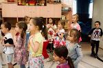 Вместе со студентами малыши искали игрушки военных лет, собирали паззлы с изображением памятников, рисовали на песочном планшете открытки солдатам, разгадывали загадки, отвечали, какой музыкальный инструмент играет в представленной мелодии, танцевали под песню «Катюша» и собирали продукты, чтобы накормить бойцов.