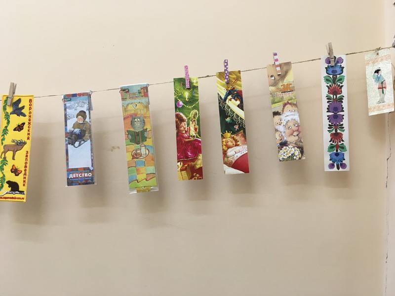 Предпочтение в экспозиции отдали закладкам с изображением книг, переплётов, форзацев, экслибрисов, портретов писателей и композиторов. Отдельную группу составили экспонаты, рассказывающие о сокровищах музеев со всей страны: Музей Московского Кремля, Эрмитаж, Музей-заповедник Тургенева «Спасское-Лутовиново», Государственный литературно-мемориальный музей-заповедник Некрасова «Карабиха», Музей-усадьба Толстого «Ясная Поляна», Воронежский областной художественный музей имени Крамского, Государственный археологический музей-заповедник «Костёнки», Воронежский государственный природный биосферный заповедник имени Пескова. На выставке можно увидеть закладки с изображением животных, сюжетов из сказок. Также интересны зарубежные закладки из Польши и Японии.