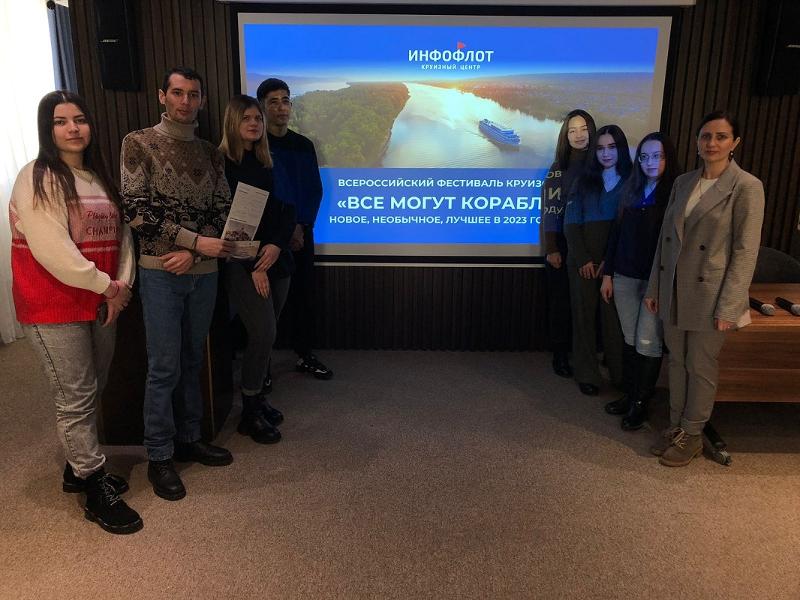 30 ноября студенты факультета географии, геоэкологии и туризма (направление «Туризм») приняли участие во Всероссийском фестивале круизов «Всё могут корабли: новое, необычное, лучшее в 2023 году». Организатором фестиваля выступил круизный центр «Инфофлот» – крупнейший российский туроператор в сфере речных круизов.