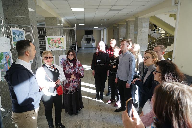 Первыми зрителями выставки стали учащиеся 6 класса лицея № 7 Воронежа, оценившие мастерство своих сверстников из Донецка.