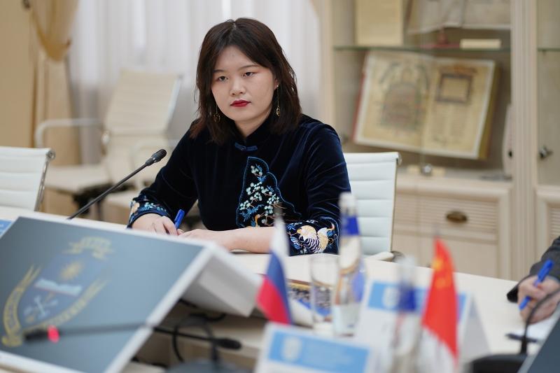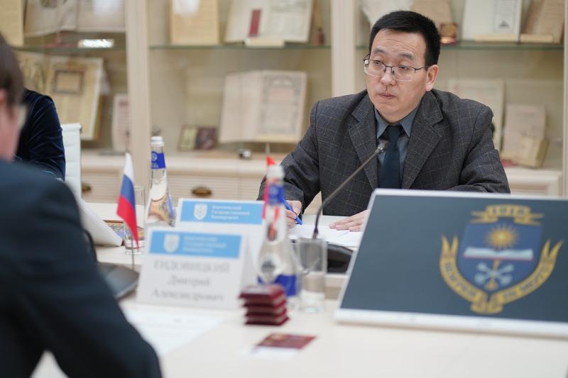Ректор представил команду, присутствующую на встрече: директора Китайского центра при ВГУ Юлию Светашову, декана факультета международных отношений Олега Беленова, доцента кафедры регионоведения и международных стран Дмитрия Ломсадзе, преподавателя кафедры перевода и профессиональной коммуникации Данилу Знаткова.