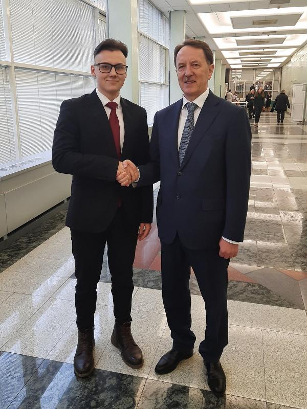 — В коридоре Государственной Думы я встретил вице-спикера Алексея Васильевича Гордеева. Когда он услышал, что я студент-политолог из Воронежа — обрадовался, согласился сфотографироваться. Он спросил меня об учёбе и передал «низкий поклон» воронежцам, — отметил студент 3 курса Дмитрий Завирюхин.
