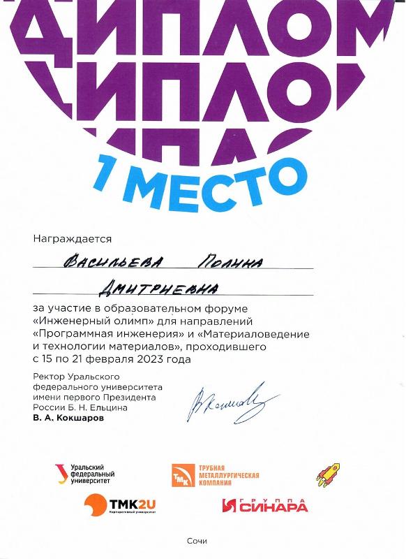 Также Полина прошла в финал олимпиады «Я – профессионал» по направлению «Материаловедение и технологии материалов». Заключительный этап состязания пройдёт в конце марта.