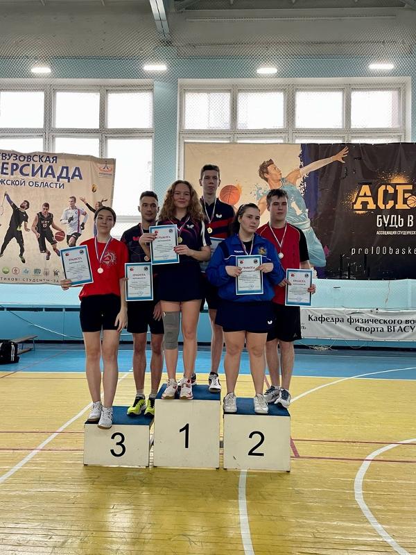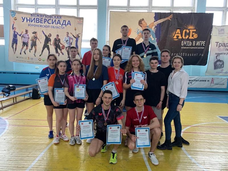 19 марта в спортивном комплексе ВГТУ прошло Первенство Воронежской области по настольному теннису. В соревнованиях приняли участие студенты средних и высших учебных заведений. В каждой из проводимых спортивных дисциплин спортсмены ВГУ заняли золотые медали и призовые места.