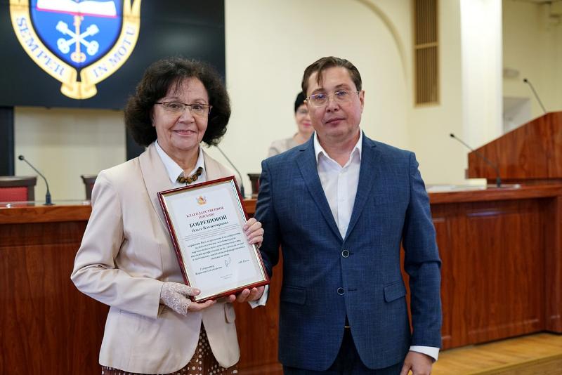 27 апреля в конференц-зале ВГУ состоялся Учёный Совет, на котором наградили 27 сотрудников вуза. Ректор ВГУ Дмитрий Ендовицкий вручил почётные грамоты правительства Воронежской области, благодарственные письма губернатора, почётные грамоты Воронежской облдумы и гордумы, а также почётные звания «Почётный работник ВГУ», «За заслуги перед ВГУ» и «Ветеран ВГУ».