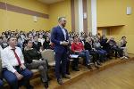 В актовом зале юридического факультета ВГУ 27 апреля состоялась творческая встреча с подполковником ФСБ в отставке, кандидатом юридических наук, доцентом кафедры уголовного права ВГУ Александром Масловым. Александр Евгеньевич рассказал коллегам и студентам об этапах своей биографии, а также, в преддверии Дня Победы, – о своих родителях-фронтовиках, прочитав военные стихи своего отца.