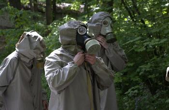 Участникам состязаний предстояло выдержать испытание на трёх этапах, первым из которых была полоса препятствий. Юноши и девушки взбирались на стену из шин, выполняли нормативы по отжиманию и подтягиванию, преодолевали часть маршрута по-пластунски. До финиша они добирались в костюмах ОЗК и противогазах, что также было одним из заданий.