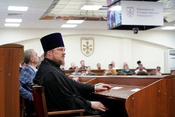 17 мая в ВГУ приехал председатель общества «Царьград», секретарь Воронежского епархиального управления, настоятель храма в честь иконы Божией Матери «Всецарица» протоиерея отца Андрея Скакалина Константин Малофеев. Он пообщался с ректором ВГУ Дмитрием Ендовицким и прочитал лекцию. В этот же день в музейно-выставочном центре открылась выставка «Россия в эпоху правления императора Николая II».