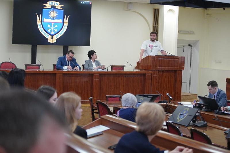 С отчётом о воспитательной работе в вузе в текущем учебном году и планом работы на новый учебный год выступил проректор во воспитательной и социальной работе ВГУ Олег Гришаев. Особенно была отмечена волонтёрская работа в вузе.