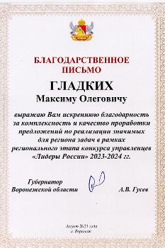 Руководитель проектного офиса ВГУ, заместитель начальника управления инновационной деятельности, доцент Максим Гладких вместе с командой стал финалистом «Лидеров России» по ЦФО. Максим вошел в топ-30 представителей Воронежской области. Всего на конкурс подали 1681 заявку.