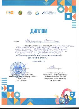 По результатам летней школы Михаилу Маргаряну выдали сертификат участника, а также вручили дипломы за работу в групповых проектах в номинациях: «ГИС-технологии в прикладной демографии», «Влияние изменений и дополнений в социально-экономическую политику Узбекистана с учётом демографического фактора», «Национальная система демографической статистики Узбекистана для обеспечения устойчивого развития: лучшие практики и направления совершенствования».