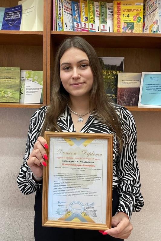 Анастасия Пометова, выпускница бакалавриата, завершившая в 2023 году обучение по направлению 44.03.05 Педагогическое образование (с двумя профилями подготовки), стала лауреатом 2-ой степени Международного конкурса выпускных квалификационных работ и дипломных исследований по педагогике, образованию и психологии.