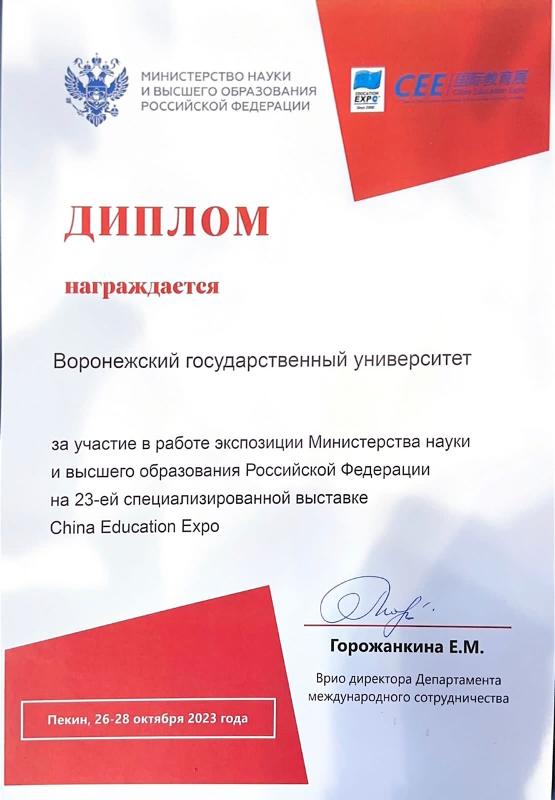 Делегация Воронежского государственного университета во главе с ректором Дмитрием Ендовицким приняла участие в Международной образовательной выставке в Пекине (Китай). Мероприятие состоялось в период с 27 по 28 октября.