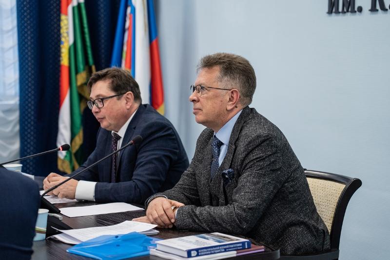 Ректор ВГУ Дмитрий Ендовицкий совместно с ректором Калужского государственного университета им. К.Э. Циолковского Максимом Казаком обратились с приветственными словами к участникам заседания. В онлайн формате выступила заместитель Министра науки и высшего образования РФ Ольга Петрова. Она подчеркнула важность проведения заседания и выделила активную позицию ректоров в поиске решений по актуальным задачам.