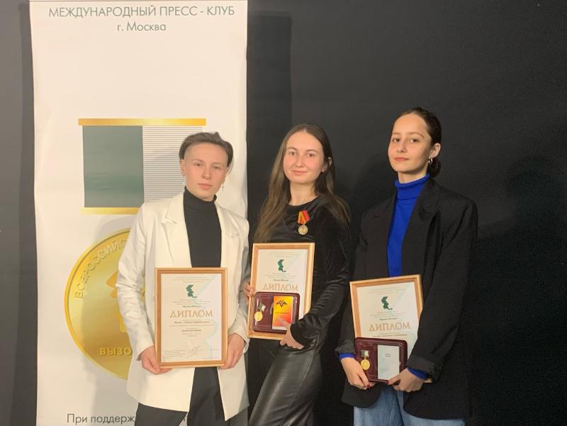 Виктория Кучина и Кабира Гасанова, студентки специальности «Военная журналистика», заняли первые места. Виктория – в номинации «Год педагога и наставника» за серию материалов, посвящённых волонтёрам СВО, её участникам и их семьям. Кабира – в номинации «Вызов – политика и экономика» за публикации о предпринимательской деятельности студентов и университетов.