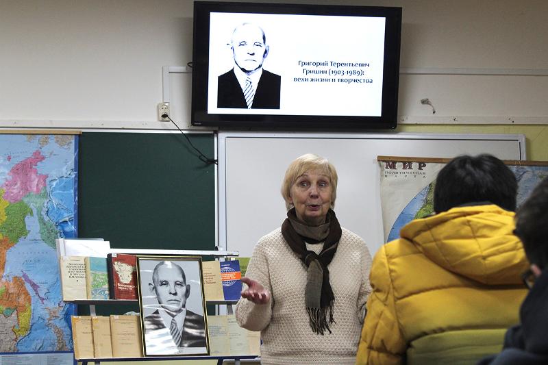 В ходе работы Круглого стола обсудили следующие вопросы: «Вехи жизни и творчества Григория Терентьевича Гришина» (докладчик – зав. кафедрой Римма Рогозина); «География сельского хозяйства в трудах Г.Т.Гришина» (докладчик – доцент Игорь Комов); «Региональные исследования в трудах Г.Т. Гришина» (докладчик – преподаватель Евгений Кулаковский). Кроме того, на мероприятие пригласили сотрудников, знавших Григория Терентьевича лично и работавших под его руководством. Людмила Калюжная, преподаватель кафедры природопользования факультета географии, геоэкологии и туризма, рассказала о нём не только как об учёном, но и как о человеке.