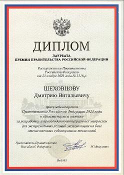 Старший научный сотрудник кафедры технологий обработки и защиты информации факультета компьютерных наук ВГУ, кандидат технических наук Дмитрий Шеховцов удостоен Премии Правительства РФ в области науки и техники за разработку и производство интегральных микросхем для экстремальных условий эксплуатации на базе отечественных субмикронных технологий.