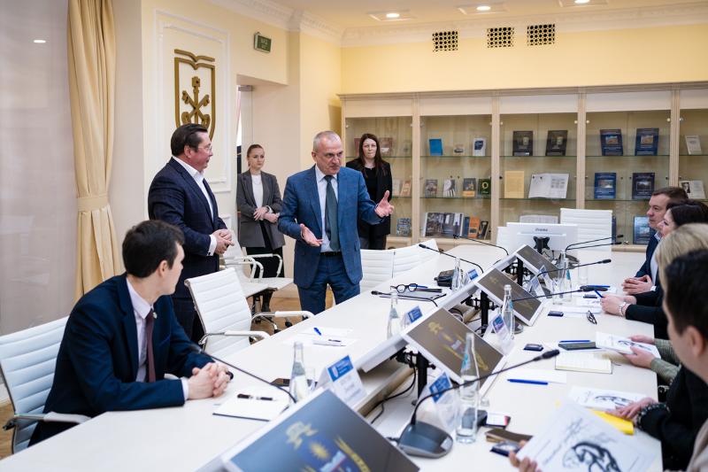28 февраля в Белом зале Главного корпуса состоялась встреча ректора ВГУ Дмитрия Ендовицкого с представителями компании Johnson & Johnson. В обсуждении приняли участие проректор по науке, инновациям и цифровизации Дмитрий Костин, декан физического факультета Олег Овчинников, а также владелец и руководитель группы компаний «Точка зрения» Станислав Слаутинский.