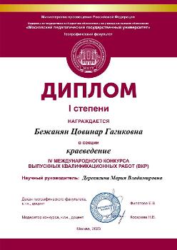 Географический факультет Московского государственного педагогического университета уже четвёртый год проводит Международный конкурс выпускных квалификационных работ. В этом году конкурс прошёл в двух группах – ВКР бакалавров и магистров по 10 секциям: Географическое образование, Гостиничное дело, Землеведение, Картография, Краеведение, Туризм, Физическая география, Цифровизация общества, Экология и геоэкология, Экономическая и социальная география. Конкурс проводили и среди ВКР учащихся колледжей по 2 секциям: Туризм и Гостиничное дело. На конкурс было подано 289 заявок из разных вузов и колледжей России и ближнего зарубежья. Факультет географии, геоэкологии и туризма ВГУ представляли семь студентов, четверо из которых стали победителями и призёрами в номинациях конкурса.