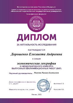В группе ВКР магистров в секции «Экономическая и социальная география» третье место занял Кирилл Михайлов с работой «Демографические аспекты устойчивого развития России», научный руководитель – доцент Анатолий Крупко. Магистр Елизавета Дорошенко за работу «Анализ территориальных различий миграционной подвижности населения Ставропольского края» получила Диплом за актуальность исследования. Руководитель – заведующая кафедрой социально-экономической географии и регионоведения, доцент Римма Рогозина.