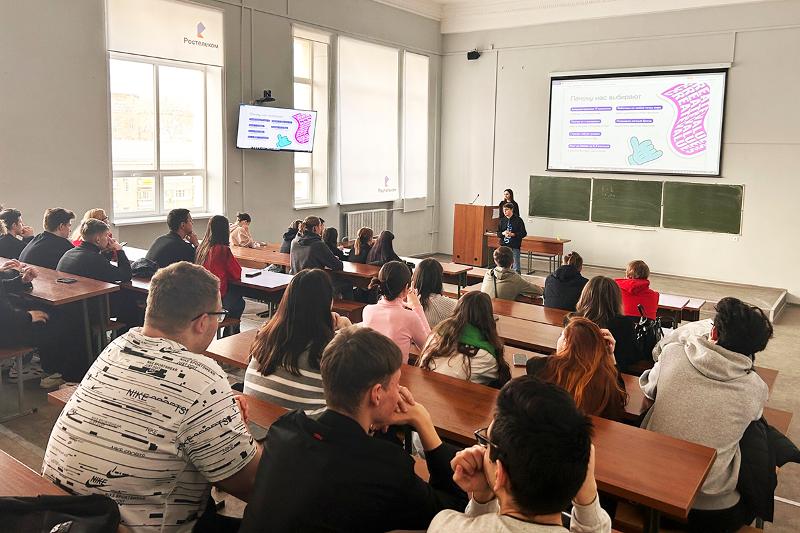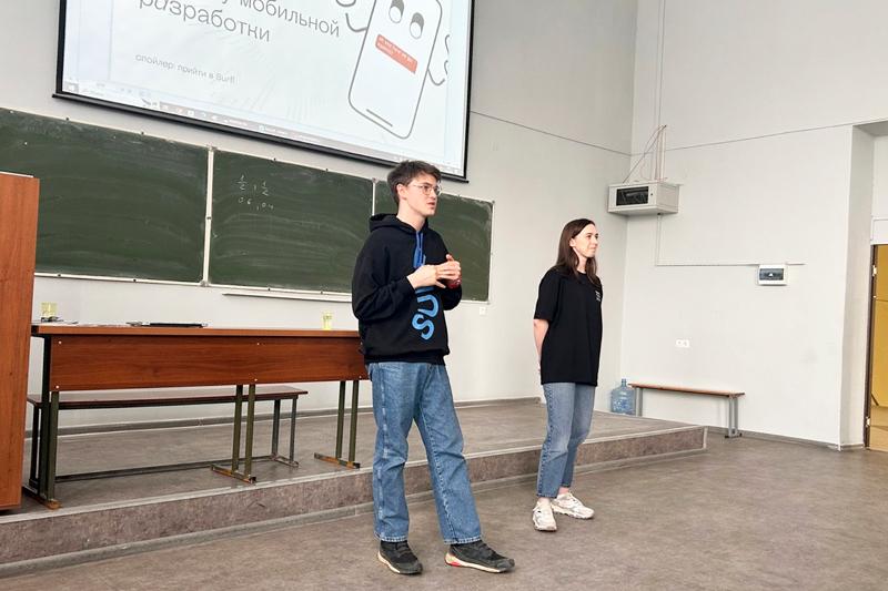 С презентацией перед студентами выступили HR-маркетолог компании Surf Павел Лобанов и HR-менеджер Анастасия Булавина. Представители компании рассказали о направлениях работы в IT-компании и навыках, которые необходимы для построения успешной карьеры: как проходить собеседования, оценивать и презентовать себя и свою работу. Отдельное внимание уделили преимуществам компании Surf на рынке труда.