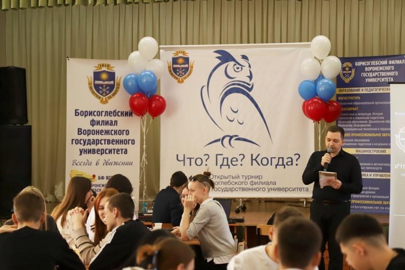 В Борисоглебском филиале состоялся открытый турнир интеллектуальной игры «Что? Где? Когда?» для обучающихся 10-11 классов, студентов выпускных курсов организаций среднего профессионального образования и студентов первого курса Борисоглебского филиала ВГУ.