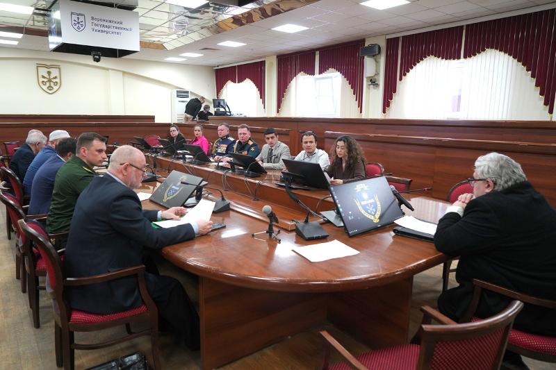 26 апреля в конференц-зале Воронежского государственного университета состоялся круглый стол на тему «Защита Отечества – во имя мира и безопасности». Модератором стал Сергей Казаров, ведущий советник отдела взаимодействия с институтами гражданского общества министерства внутренней политики Воронежской области. Участники – члены Национальной палаты при Губернаторе Воронежской области и представители национальных общин Воронежской области, а также представители организаций высшего образования, молодёжных объединений, клубов интернациональной дружбы. С приветственным словом выступил проректор по воспитательной и социальной работе ВГУ Олег Гришаев: