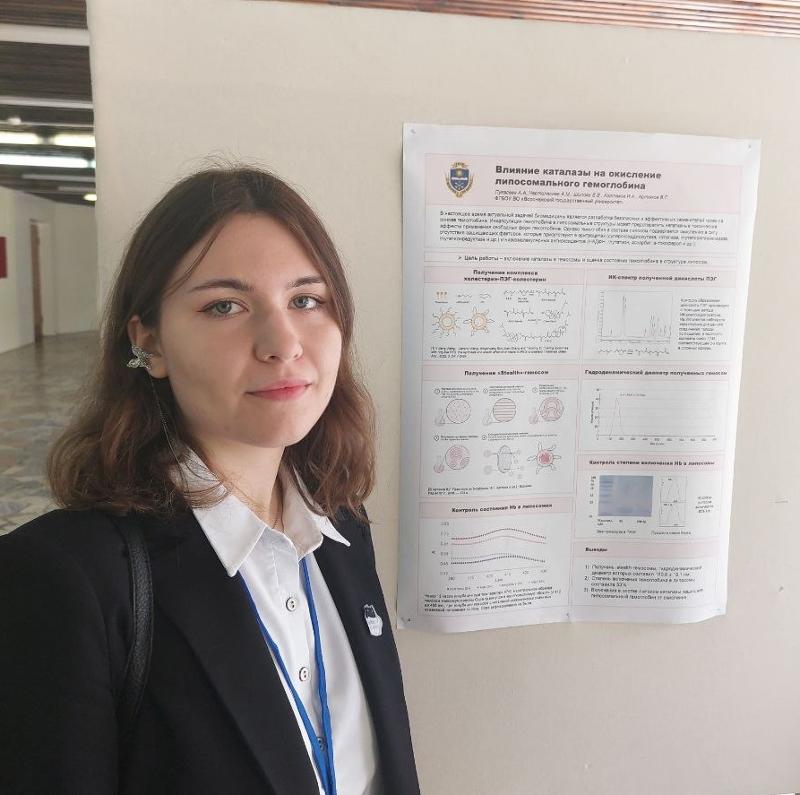 Делегаты ВГУ приняли активное участие в работе секций «Клеточные технологии» и «Цифровизация здравоохранения и медицинская биоинформатика». Алёна Пукасёва выступила с сообщением на тему «Влияние каталазы на окисление липосомального гемоглобина». Доклад был посвящён разработанному на кафедре биофизики и биотехнологии способу получения липосом, на который имеется патент РФ, и иммобилизации в них главного белка крови – гемоглобина. Людмила Соколова представила доклад на тему «Исследование особенностей взаимодействия холестерола с амфотерицином В в липидных микродоменах мембран клеток крови», посвящённый механизмам связывания полиенового антибиотика с холестерином и вопросам о количественном содержании холестерола в липидных микродоменах эритроцитов и лимфоцитов периферической крови человека.