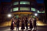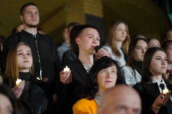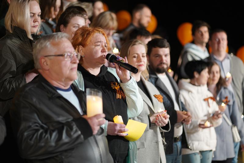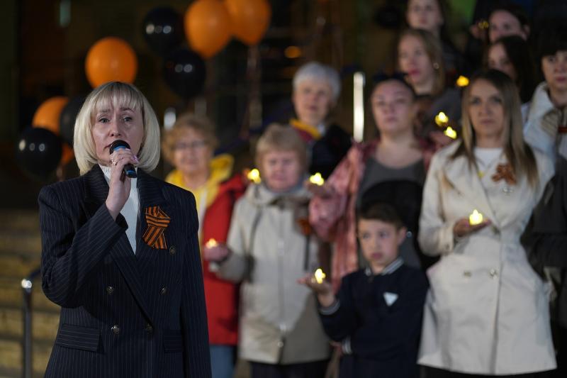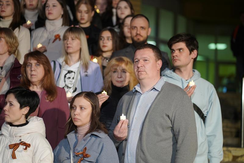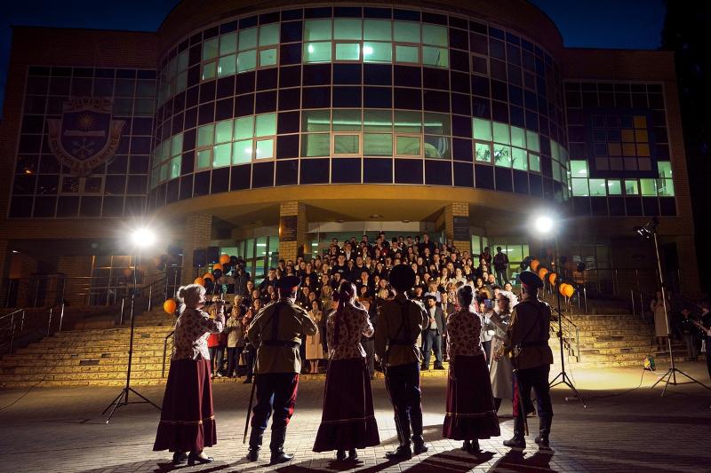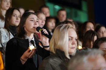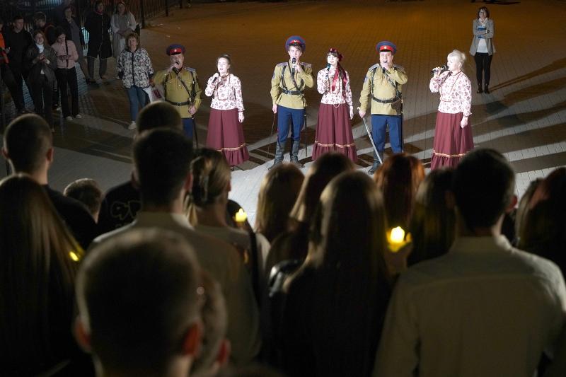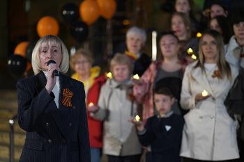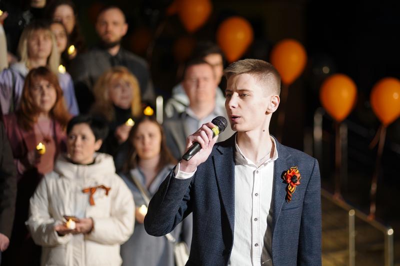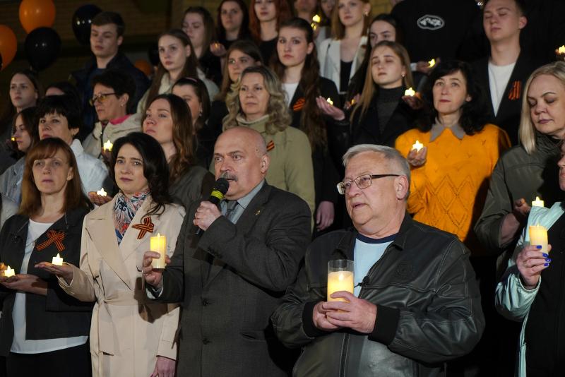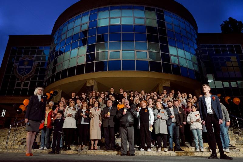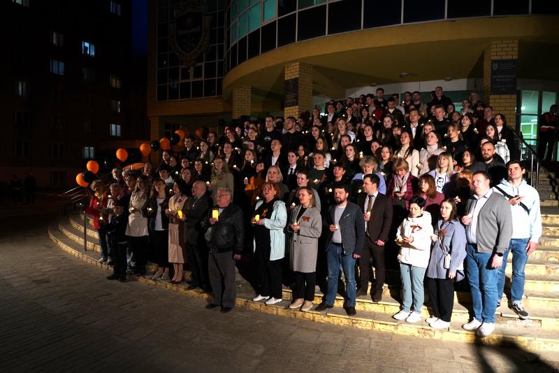 Спеть всем известные песни военных лет собрались 120 человек: преподаватели и студенты факультета. Каждый взял в руки зажженную свечу, а георгиевскую ленту – символ памяти и воинской славы – повесил на грудь, рядом с сердцем.