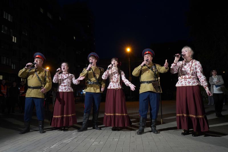 Хор ВГУ исполнил песни: «Смуглянка», «День Победы», «Потому что мы пилоты», а также авторскую песню о Воронеже «Город воинской славы». Участники акции прочли пронзительные стихи о войне «Жди меня» и «До свидания, мальчики».