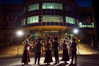 6 мая сотрудники ВГУ и казачий ансамбль Девицкого СДК «Звонница» исполнили песни Победы на ступеньках экономического факультета. Мероприятие приурочили к грядущему Дню Победы.
