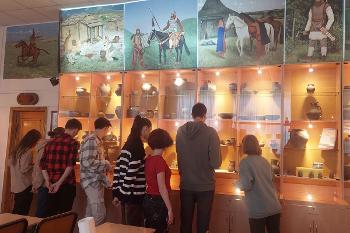8 мая в рамках работы НСК «Краеведение» студенты 3 курса факультета географии, геоэкологии и туризма Воронежского государственного университета с руководителем НСК доцентом кафедры физической географии и оптимизации ландшафта Евгенией Жигулиной посетили археологический музей ВГУ. Здесь представлены экспонаты, относящиеся к верхнему палеолиту, эпохе бронзы, раннему железному веку и раннему средневековью.