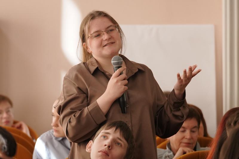 Лилия Абрамова в ходе мероприятия рассказала студентам и сотрудникам ВГУ о проекте «Юности граница». Это серия документальных фильмов, посвящённая детям и подросткам, которые живут в приграничных зонах и стараются сделать всё, чтобы поддержать участников специальной военной операции, среди которых их родные и важные сердцу люди. Цель проекта – донести до жителей всей России, каково тем, кто не понаслышке знает, что такое «прилёты».