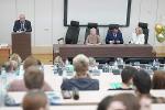 24 мая в стенах Воронежского государственного университета состоялась ежегодная Международная научно-практическая конференция «Инновационные доминанты социально-трудовой сферы: экономика и управление». Конференция посвящена 100-летию со дня рождения Владимира Наумовича Эйтингона, заслуженного экономиста России, первого руководителя Президентской программы подготовки управленческих кадров Воронежской области, кандидата экономических наук, профессора ВГУ. Мероприятие открыл ректор Воронежского государственного университета, доктор экономических наук Дмитрий Ендовицкий: