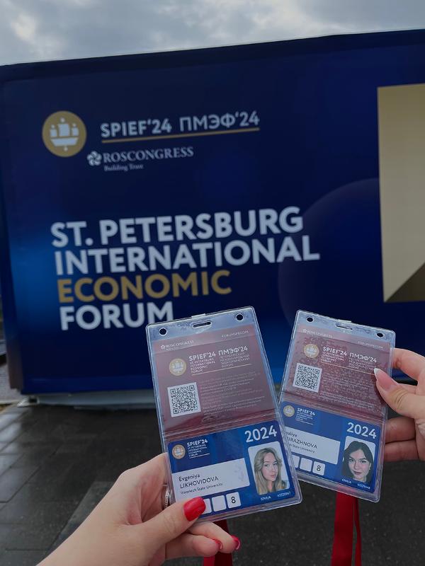 8 июня студентки 2-го курса факультета международных отношений кафедры зарубежного регионоведения Евгения Лиховидова и Амалия Сабиржанова, а также студенты 4-го курса Бизнес-школы ВГУ Артём Маликов и Елизавета Абросимова приняли участие в Петербургском международном экономическом форуме.
