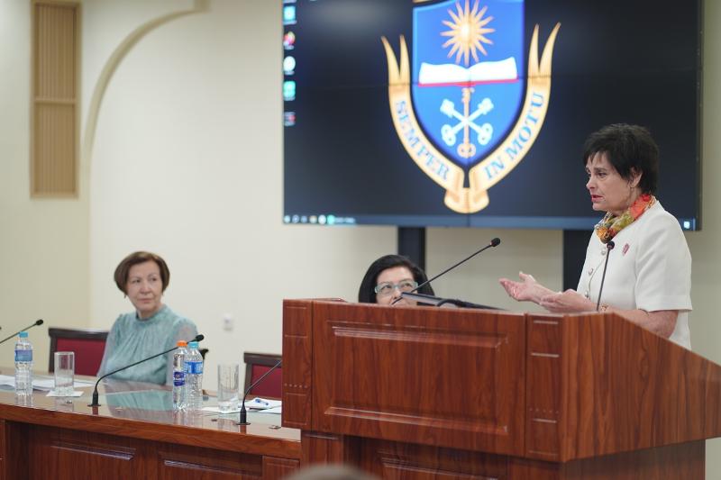 Рабочая часть конференции началась с доклада профессора кафедры конституционного и муниципального права имени профессора В.С. Основина, заслуженного юриста Российской Федерации Татьяны Зражевской – «Народовластие как сущность государственного (конституционного) права». Выступление Татьяна Зражевская начала с высказывания Иоганна Вольфганга Гёте: «Человек всегда учится лишь у тех, кого любит».