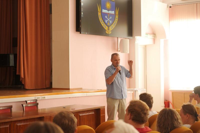 Перед абитуриентами и их родителями выступил начальник управления по довузовской работе и набору студентов Александр Макушин. Он рассказал о процедуре зачисления и ходе приёмной кампании, а также ответил на вопросы студентов о льготных местах, официальной публикации конкурсных списков и поступлении абитуриентов с новых территорий и приграничных регионов.