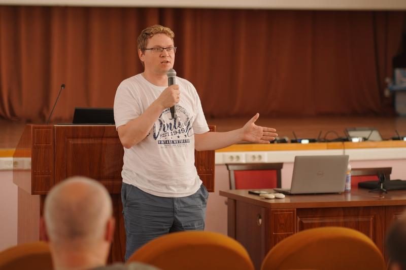 Декан ФКН представил присутствующим и директора Департамента разработки Sitronics Group Юрия Синтяева, который рассказал о том, что ожидает будущих студентов после поступления на факультет. В частности, Юрий Синтяев поделился с абитуриентами информацией о проведении межвузовских олимпиад по спортивному программированию от компании Sitronics Group, а также об оснащении лабораторий.