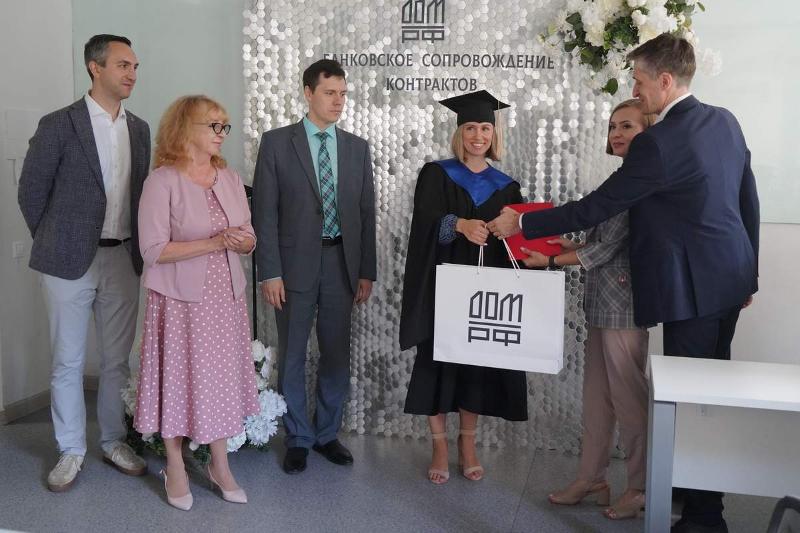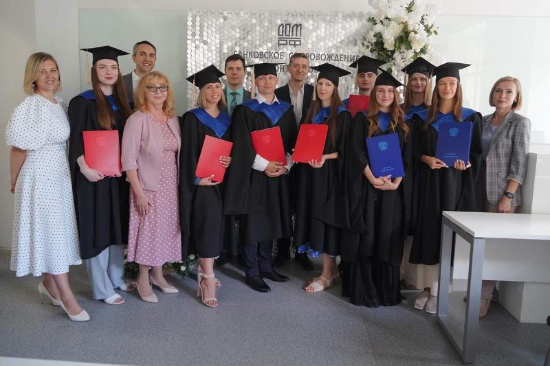 12 июля в Главном корпусе ВГУ состоялось торжественное вручение дипломов выпускникам совместной магистратуры экономического факультета и компании «ДОМ.РФ» по программе «Банковское сопровождение контрактов». В этом году магистерскую программу успешно освоили 10 человек.