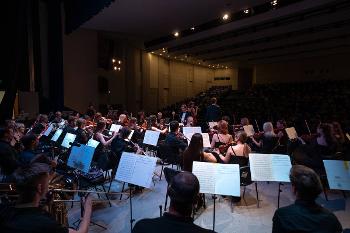 Музыканты под руководством дирижёра Юрия Андросова подарили публике возможность насладиться произведениями мировой классики: например, вакханалию из оперы «Самсон и Далила» К. Сен-Санса. Солистка Мария Бойко исполнила куплеты Орловского из оперетты «Летучая мышь» и «Где ты, мечта?» из кинофильма «Раба любви».