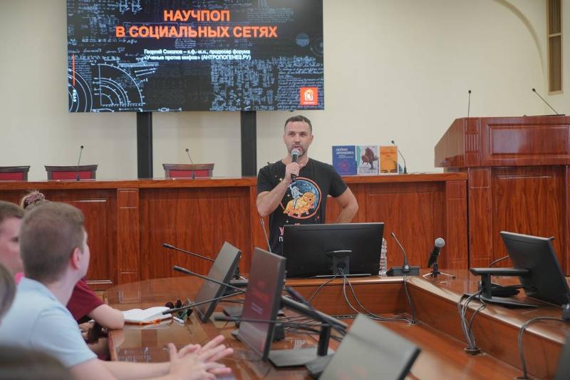 Вчера, 5 сентября, специально для студентов и сотрудников ВГУ и других вузов Воронежа продюсер научно-просветительского форума «Учёные против мифов», кандидат физико-математических наук, один из основателей портала АНТРОПОГЕНЕЗ.РУ Георгий Соколов провёл лекцию на тему: «Науч-поп в социальных сетях: создание комьюнити; написание постов; модерация комментариев». Встреча прошла в рамках проекта Информационных центров по атомной энергии «Энергия науки».
