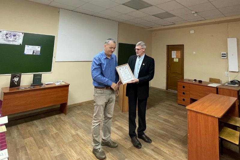 Вадим Васильевич Свиридов, секретарь Воронежского областного отделения РГО, вручил гостю факультета Алексею Александровичу Гунько благодарственное письмо и выразил надежду на дальнейшее плодотворное сотрудничество.