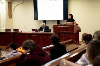 – Для нас важно оценивать ваше здоровье, в том числе и репродуктивное. Центр медицинской профилактики регулярно проводит исследования в этой области. В рамках года семьи Министерство здравоохранения разработало множество мероприятий, направленных на то, чтобы мотивировать, дисциплинировать молодёжь на создание семьи. Мы поговорим о традиционных семейных ценностях и семейных взаимоотношениях, – обратилась к студентам Алевтина Анатольевна Карпенко.