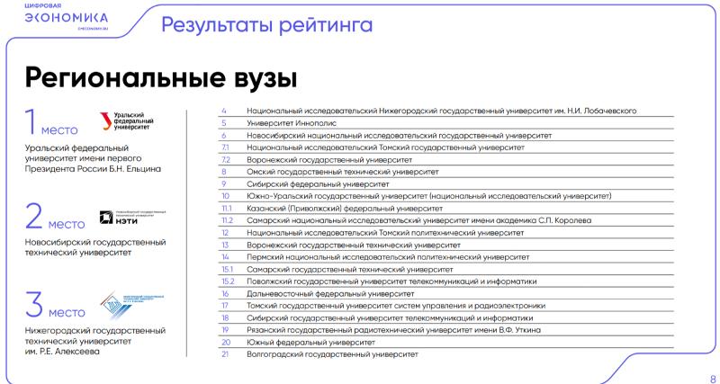 АНО «Цифровая экономика» при поддержке Ассоциации предприятий компьютерных и информационных технологий опубликован рейтинг вузов цифровой экономики.