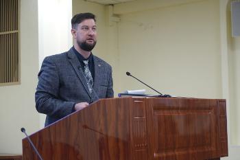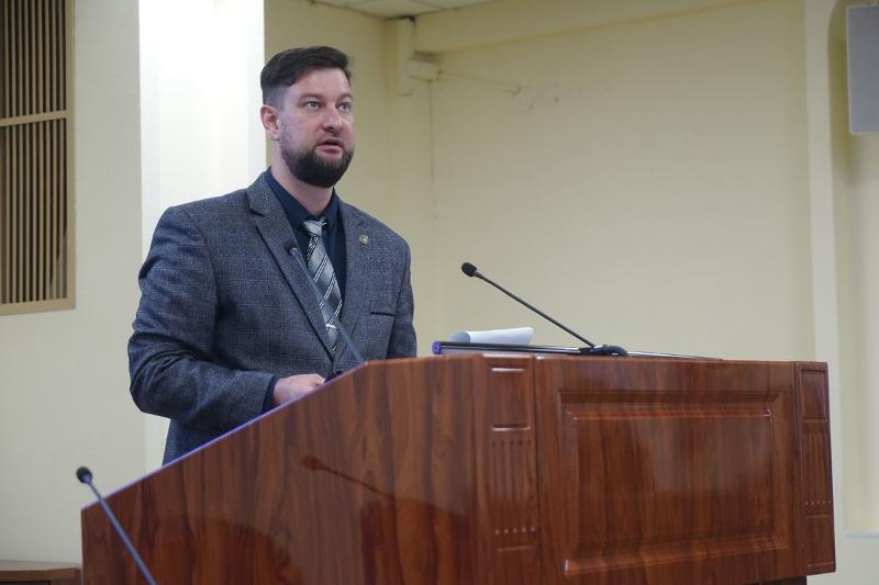 С приветственным словом выступил Евгений Александрович Старухин, советник отдела лицензирования недропользования министерства природных ресурсов и экологии Воронежской области: